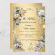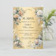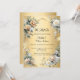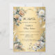 Um fundo com aspecto de ouro. Decorados com flores amarelas e brancas e uma fita falsa de ouro. Personalize e adicione um nome e detalhes. Perfeito para o 50º aniversário de casamento