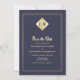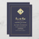Convite Reserve a Data. Casamento Dourado marinho Azul