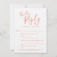 Simples convites de resposta de casamento tipográficos de coral e coração branco. Outros itens de coral vivo correspondentes e diferentes tonalidades disponíveis. © Design original de www.mylittleedenweddings.com em zazzle.