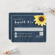 Cartão de resposta de casamento rústico country com madeira de celeiro chic escuro e girassol amarelo brilhante contrastante.