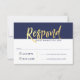 Convite RESPOSTA DE CONFIRMAÇÃO de ouro falso azul marinho