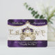 Tipografia de Resposta de Confirmação dourada e carruagem dourada com dossel de aparência de veludo aparado com sotaque decorativo dourado e fundo de damasco branco.