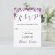 Lindas flores de primavera e verão em rosa, lavanda e roxo, juntamente com sua folhagem leve, são um design elegante para este cartão de resposta de RSVP fora do comum. Outra chance de convidar seus convidados para se juntarem a você na celebração do seu casamento. Veja mais em Heart Song Notes na Zazzle, incluindo um convite de casamento coordenado.