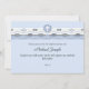Juntem todos os seus entes queridos para esta ocasião importante com este convite na moda. Sombras azuis, em harmonia, adornadas por uma fita de "ilhéus" de ondas brancas e azuis corre através do topo deste belo convite. Uma simples cruz branca numa crista circular é o ponto focal. Igualmente adequado para um batismo, batizar ou primeira comunhão santa.