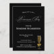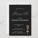 An elegantly simple retirement party invitation featuring a flute of champagne on a black background. All text (except the "Retirement Party" image) is easily changed by using the template. For other text changes (different type fonts, color, size or placement) select "Personalize this design" then select "Customize with Design Editor." You can also resize, remove or rearrange the "Retirement Party" image with the Design Editor. If desired, use the Design Editor to resize or reposition the champagne flute. Available for instant download if you prefer to print your own.