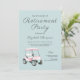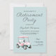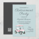 Celebrate your retiree’s faithful service and new beginnings with this retro, personalized retirement party invitation for her. It features a pink, vintage golf cart and custom typography on a blue-green background. You can easily customize it with your party details including your retiree’s name which is set in beautiful script font. A QR Code on the back of the invitation allows for additional party details like the menu, dress code, and gift suggestions.