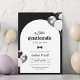 Surpreenda seus entes queridos com este convite para chás de fraldas na moda, elegante, com roteiro retrô, gravata elegante, smoking, balões e texto personalizado de sua escolha.