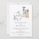 Lindo convite de casamento para o tema do cão, com nossa pintura manual de Ouro de aquarela Retriever & Catahoula, ilustração de cão-leopardo. O adorável Ouro Retriever tem uma linda rosa rosa-rosa, florais brancos, e coroa verde decorando o cachorro. O layout do design é simples, limpo e elegante, e os elegantes arranjos florais complementam maravilhosamente o design. Personalizado com o seu nome e detalhes adicionais para um belo convite de casamento perfeito para amantes de cães, donos de cães, casais com cães ou cães. Design e trabalho de arte de desenho manual por © Moodthology Papery.