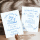 Convite Retro Azul Conchas Marinhas & Sininhos de Casament