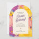 Celebrate in style with this vibrant floral arch birthday invitation! Featuring bold retro-inspired flowers in warm pinks, oranges, and purples, this cheerful design sets the tone for a fun garden party, spring birthday, or summer celebration. Personalize with your event details for a unique, memorable invite.