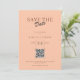 Convite Retro Coral Peach QR Code Save The Date Wedding