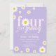 Retro Daisy Four Ever Groovy Purple 4th Convite de Aniversário