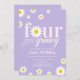 Convite Retro Daisy Four Ever Groovy Purple 4º Aniversário