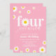 Retro Daisy Four Ever Wild Pastel Pink and White 4th Birthday Invation