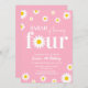 Retro Daisy Pastel Pink e White 4th Birthday Convite