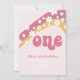Convite Retro Daisy Pink Primeiro Aniversário do Arco-Íris