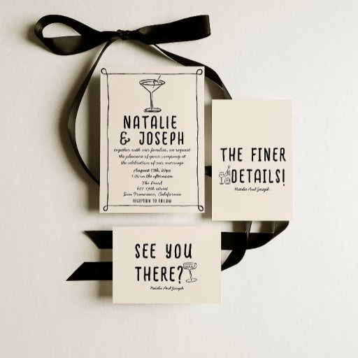 Este convite para o casamento é perfeito para o seu casamento se você está procurando por um elegante, único e fácil editável, tudo em um convite para o casamento. Um elegante e único creme minimalista e uma mão preta desenhada para modelo de casamento de dois lados. O que apresenta um plano de fundo vintage puro e cremoso na frente e dentro de um cocktail desenhado à mão. Com um bolo e velas nas costas. E a mão negra e nega escreveu os primeiros nomes da noiva e do noivo e editou informações de casamento. Barato e é também um e-convite eletrônico digital se você quiser enviá-lo por texto ou email. Todas as informações são personalizáveis clicando no botão personalizar. Então pegue-o e faça-o seu para que você faça você convidar noivos e excitados.