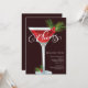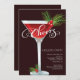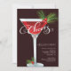 ELOGIOS do divertimento! O convite retro do cocktail do feriado que caracterizam um vidro vermelho de martini com um agitador vermelho & branco do bastão de doces da listra e um azevinho folheiam com as bagas na haste.