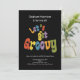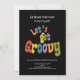This will get guests excited to come to the 60th birthday party they are now invited to! Unique Retro Let's get Groovy design that's colorful and tasteful with the multi colored red, orange, blue, green, yellow on Black! On the back is a Retro Record Player and some "Cool Vibes" coming from it. The words below it promise great food, great music, and great dancing! Who wouldn't want that!?! Get excited and plan away!