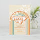 Convite Retro Groovy One Rainbow Brown Orange Birthday Inv