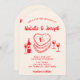 Convite Retro Hand Drawn Red Cake Modern Arched Wedding