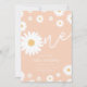 Prepare-se para um dia de sol e flores com este charmoso convite de primeiro aniversário "Florafest". Com um padrão caprichoso de margaridas brancas e um layout de letra moderna, este design inspirado no retro é perfeito para um festival de jardim na primavera ou verão. Este modelo está disponível em seis cores lindas (azul, verde, rosa, pêssego, amarelo e coral) e apresenta um verso limpo e simples para quaisquer detalhes adicionais do evento.