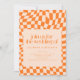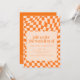 Convite Retro Orange Abstract Check Wedding QR Code RSVP