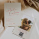 This wedding invitation is perfect for your wedding with unique design and.An elegant unique simple minimalist cocoa cream photo QR code wedding template invitation. Which features plain beige creamy background. And bright orange hand lettered bride's and groom's first names. and editable info with changeable photo on the back and scannable QR code. Affordable and it is also digital electronic e-invitation if you want to send it by text or email. All the info are customizable by clicking on the personalize button. So Grab it and make it yours so you make you invites engaged and excited .