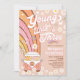 Retro Orange Young Wild e Three aniversário de 3 anos Convite Retro estilo 3º aniversário convite para uma garota com uma van, arco-íris, margaridas, notas musicais, corações e título de estilo retrô não editável.