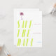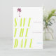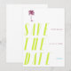 Um simples e moderno cartão de salve a data em cores da moda, com um motivo de palmeira vintage. Perfeito para casamentos retrô, casamentos de destino ou aqueles que acontecem em um local tropical.