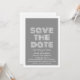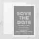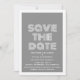Anúncio Retro para Salvar a Data em cinza e branco com um design de tipografia moderno e funky. Este convite para salvar a data é moderno e elegante, e fácil de personalizar com os detalhes do seu casamento. Para mais opções de personalização, clique no botão Personalizar.