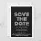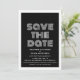 Anúncio Retro para Salvar a Data em preto e branco com um design de tipografia moderno e funky. Este convite para salvar a data é moderno e elegante e fácil de personalizar com os detalhes do seu casamento. Para mais opções de personalização, clique no botão Personalizar.