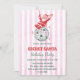Add some sparkle to your Christmas celebration with this Secret Santa Holiday Party invitation featuring a fun illustration of Santa swinging from a disco ball against a pink striped background. The bold red and green typography brings classic holiday cheer with a playful retro twist .