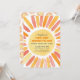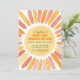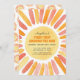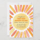 Comemore a primeira viagem do seu bebê ao redor do sol com um aniversário colorido e retrô com uma aquarela e um design de raios. Dê a sua luz do sol uma celebração divertida e fofinha de primeiros aniversarios temáticos, apresentando um sol amarelo com raios laranja e coral. Simplesmente personalize para torná-lo seu próprio - design neutro em termos de gênero, perfeito para rapazes e raparigas! A cor da fonte também pode ser alterada no editor.