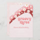 Retro inspirou Groovy no terceiro convite de aniversário com margaridas ao estilo 70 e fontes boho e arco-íris,