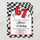 Convite Retro Red Black Checkered 6 7 Boy 7th Birthday