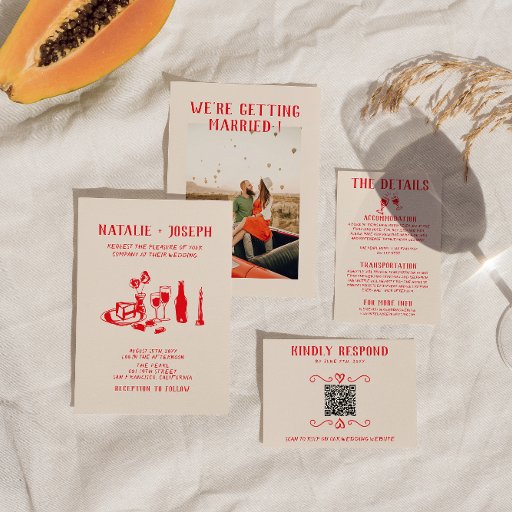 Retro Vivid Red Hand Written Drawn Wedding Suite Criado por marouane boukouyen