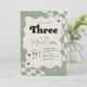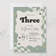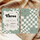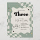 sage green checkered 3rd birthday, groovy three birthday invitation, young wild and three invite, three fast birthday party theme, retro third birthday invitation, neutral 3rd birthday card, wavy sage green invitation, our little love is turning three, modern checkered 3rd birthday, boho retro birthday party, vintage stars 3rd birthday, trendy third birthday invite, sage cream checkered invitation