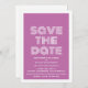 Anúncio Retro Salve a Data em fuchsia radiante e branco com um design de tipografia moderno e funky. Este convite de salve a data moderno e elegante é fácil de personalizar com os detalhes do seu casamento. Para mais opções de personalização, clique no botão Personalizar.