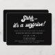 This fun surprise retirement party invitation features a black background with retro white script and simple typography for the invitation text. The script on the front says "shhh... It's a surprise!". All of the colors (including the background and script) are easily customizable. You can even add a photo to the back... Just use the "design tool".