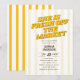 Announce the most exciting listing of the season with a Bridal Shower Invitation that is equal parts witty, warm, and wonderfully styled. The bold heading She Is Fresh Off The Market commands attention in a striking retro serif font that brings vintage confidence and a knowing smile to every detail, the perfect way to celebrate a bride whose heart has officially been claimed. A cheerful background of soft pastel yellow stripes ties the whole design together, evoking the bright, breezy charm of a celebration that feels as fresh and joyful as the occasion itself.
