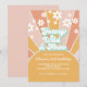 Convite de aniversário de três anos inspirado em Young Wild e Three Retro Sunshine com margaridas estilo anos 70 e fontes e cores boho.