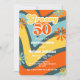 O Retro inspirou o convite de 50 anos do Groovy com padrão de ondas retrorativas, margaridas e fontes e cores de feto.