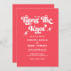 This stylish red wedding invitation features a bold retro script design that says “We Are Tying the Knot.” The vibrant red background and vintage typography bring a fun and nostalgic charm to your wedding theme. Perfect for couples who love classic style with a modern twist.