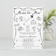 Retro Funky Whimsical Hand Desenhou a Senhorita para a Sra. Chá de panela - Um chá de panela temático viagem começa com um convite que inspira o desejo desesperado. Com ilustrações esquisitas, divertidas e bonitas desenhadas à mão, com um avião, passaporte, anéis de noivado, buquê de flores batendo copos de champanhe, uma bagagem fofa com corações, câmera e óculos de sol, todos enfeitados por um quadro branco de rabisco. Viajar de Miss à Sra. está escrito em caracteres escritos à mão inspirados na vintage. Edite este modelo de chá de panela com seus próprios detalhes de evento. Todo texto é personalizável. No verso você encontrará ilustrações ainda mais divertidas, incluindo um globo, mapa e bagagem. Disponível no impressão e no download digital ecológico, perfeito para envio via texto, email ou mídia social.
