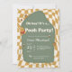 Celebrate your little hunny's impending arrival with this adorable and trendy Winnie the Pooh baby shower invitation set! This charming ensemble includes a main invitation card featuring the beloved Pooh Bear, playful honey pots, and bees, all set against a fun retro checkerboard background with a modern sage green accent. The bold "Oh boy! It's a... Pooh Party!" message makes it perfect for a boys' baby shower.