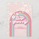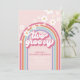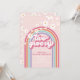 Dois Groovy! O Retro inspirou o convite para segundos aniversários com fontes e cores estilo 70, arco-íris e margaridas.