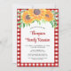 Planejar uma reunião de família? Convide a sua família para a reunião com este convite para a reunião floral da família, que é decorado com girassóis de aquarela e folhagem num fundo de gingham vermelho. Facilmente personalizável. Use a Ferramenta Design para alterar o tamanho, o estilo ou a cor do texto. À medida que criamos a nossa trabalho de arte, não encontraremos esta imagem exata de outros designers. Original Watercolor © Michele Davies.