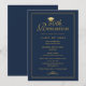 Envie aos seus colegas de 50 turmas de reunião de classe nosso elegante convite de placa plana com um fundo azul marinho e uma tipografia falsa com script dourado acentuada com um boné de formatura dourado. Personalize com todos os seus detalhes de reunião. Elaborado por ©Susan Coffey.