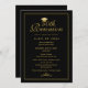 Envie seus colegas de 50 turmas de reunião de classe nosso elegante convite de cartão plano com fundo preto e falso roteiro dourado acentuado com um boné de formatura dourado. Personalize com todos os seus detalhes de reunião. Elaborado por ©Susan Coffey.
